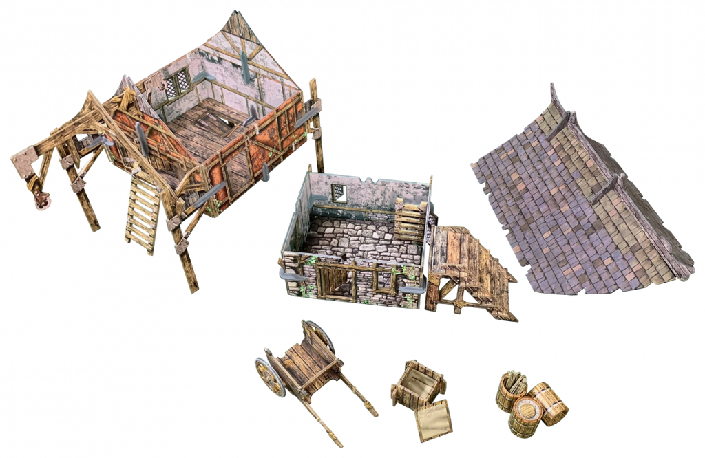 This box contains everything you need to build a storage barn complete with loading pulley and staircase, suitable for many 28-35mm fantasy and historical games. The interior is fully detailed and the roof and upper floor are removable. The set includes a hand cart and scatter terrain to accessorise your table. Many of the pieces are modular and can be assembled in different combinations or mixed and matched with the rest of the range.