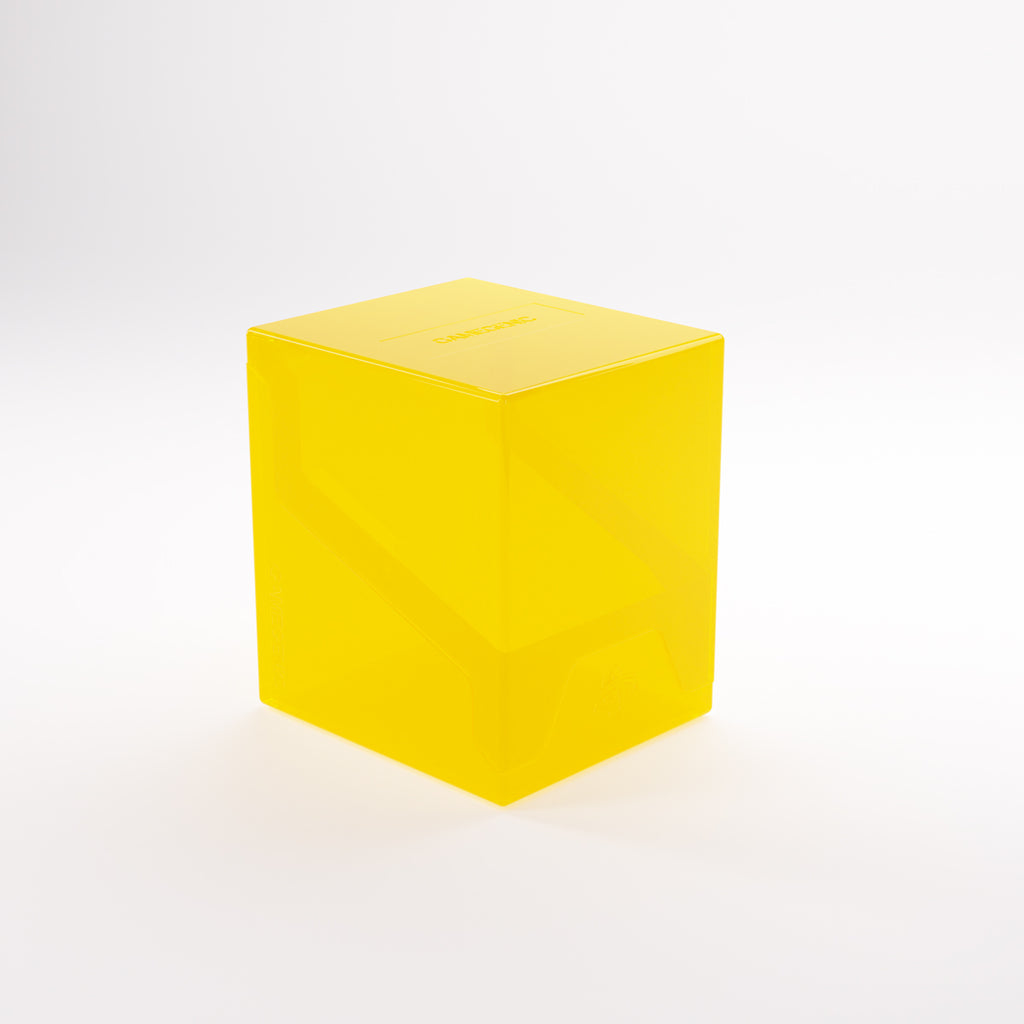 “If you’re gonna stand, stand like a Bastion!”– The Bastion 100+ XL is a very compact and rock-solid deck box to safely protect 100+ double-sleeved cards in Thick Inner Sleeves. Due to translucent materials and smart positioning of the closing flaps, the top or Commander card is fully visible from the outside without opening the box. The innovative secure click-lock mechanism protects your deck while still allowing easy access. The Bastion consists of 2 symmetrical parts that easily convert into a card pile and discard pile holder. It is perfect for a huge variety of trading card games. Thanks to its modular design, the Bastion fits perfectly into other Gamegenic products. It also comes with a write-on sticker for personalization. The Bastion is available in 10 different colors, including an exclusive mix & matched black/clear version.