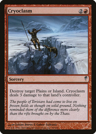Destroy target Plains or Island. Cryoclasm deals 3 damage to that land's controller.