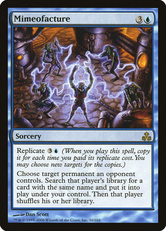 Replicate {3}{U} (When you cast this spell, copy it for each time you paid its replicate cost. You may choose new targets for the copies.) Choose target permanent an opponent controls. Search that player's library for a card with the same name and put it onto the battlefield under your control. Then that player shuffles their library.