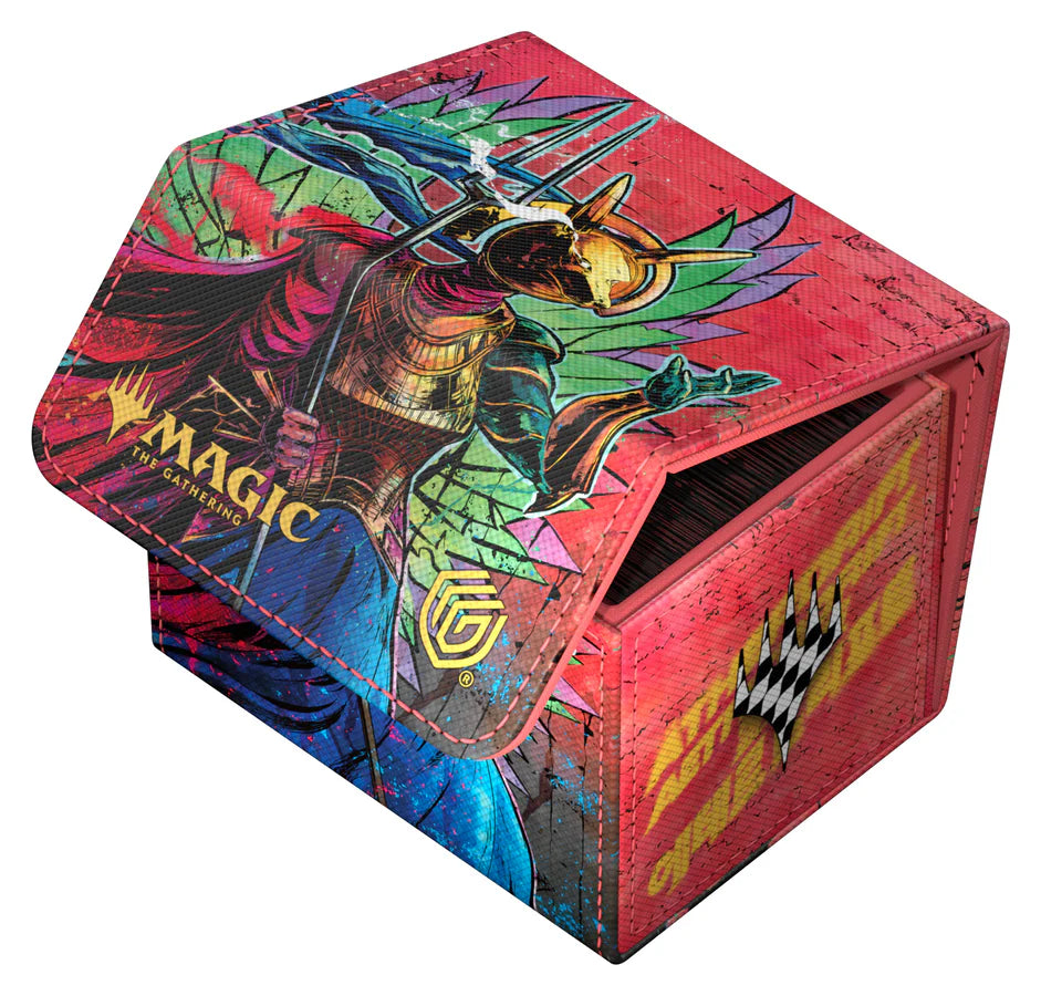 The Sidewinder 100+ Xenoskin is a high-quality TCG deck box that offers premium card protection thanks to its resistant Xenoskin material, microfiber inner lining, and strong magnetic closure, while still granting easy and convenient access to the deck inside. The deck boxes are printed in full color with officially licensed artworks from Magic: The Gathering’s upcoming set “Aetherdrift”. The Sidewinder 100+ Xenoskin is optimized to hold 100 double-sleeved or 120 single-sleeved cards in Ultimate Guard sleeves.